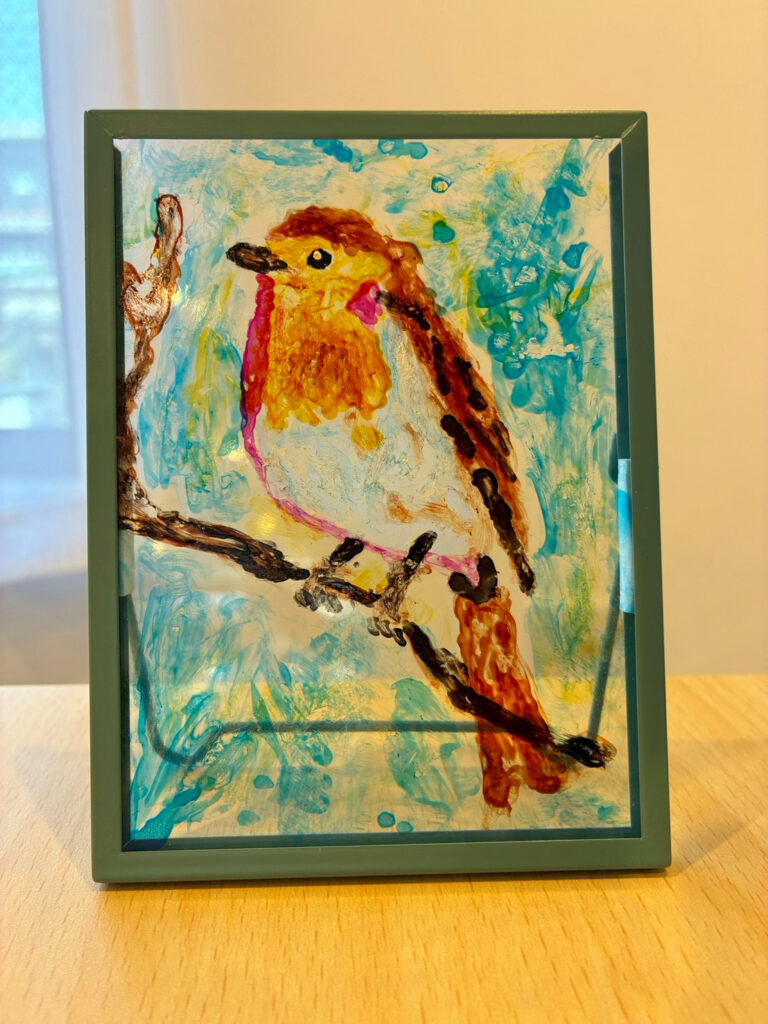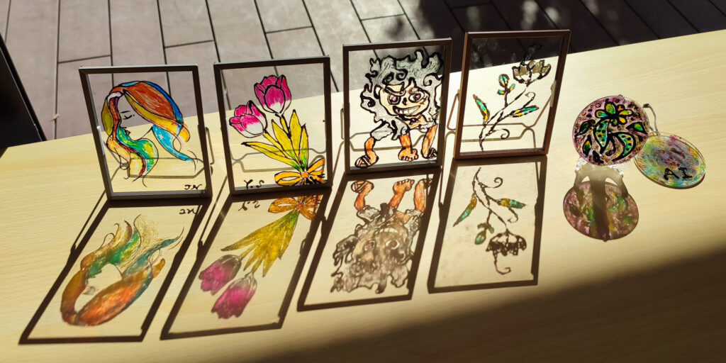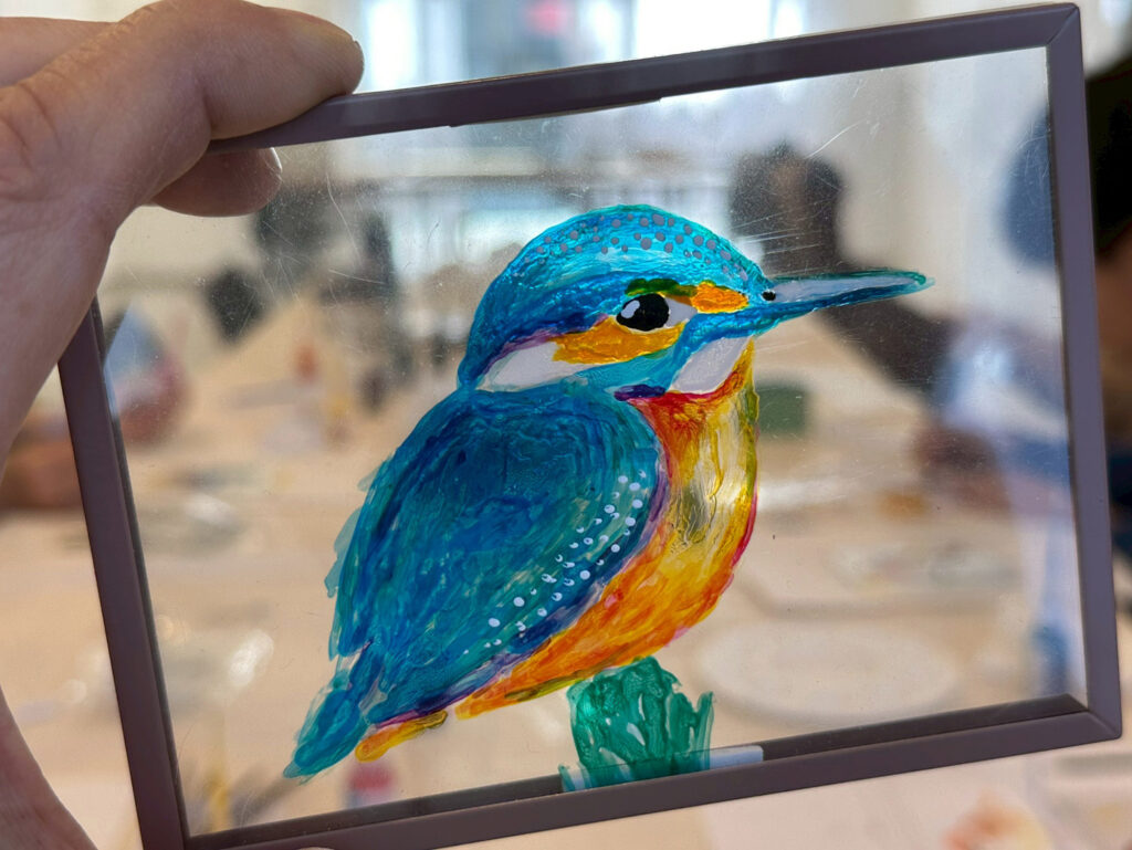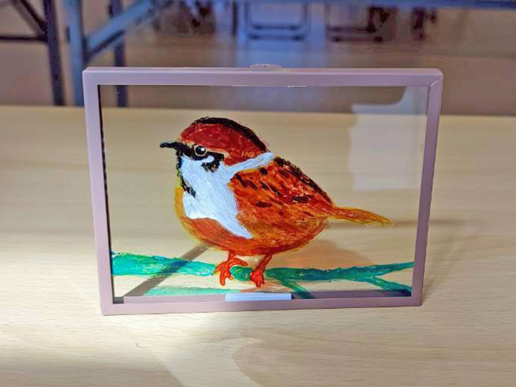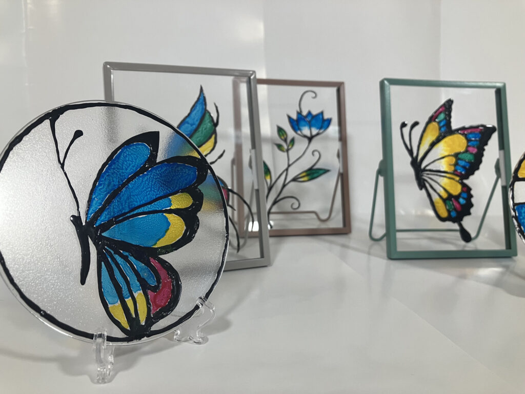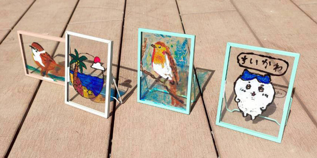 車のフロントガラス製造時に出る廃材から生まれた透明感のある特別な絵の具を使ったアート🌈✨️