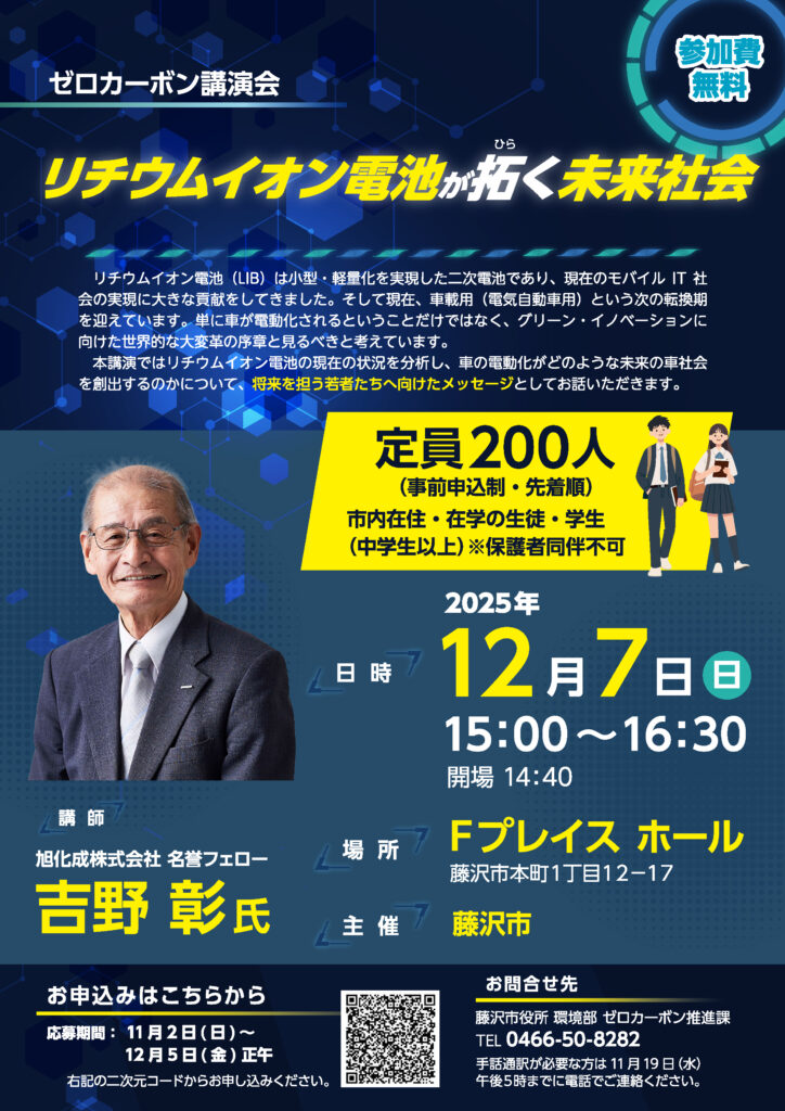 リチウムイオン電池は小型・軽量化を実現した二次電池であり、現在のモバイルIT社会の実現に大きな貢献をしてきました。そして現在、車載用(電気自動車用)という次の転換期を迎えています。本講演ではリチウムイオン電池の現在の状況 […]